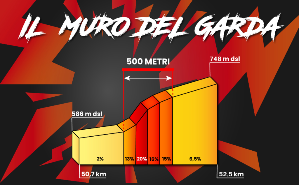 Anche il tracciato della Granfondo di Domenica 13 ottobre è altrettanto mozzafiato: un percorso di 97.5 km e un dislivello di 1190 mt immerso nelle colline del Garda Veneto. Un percorso che non regala solo bellissimi paesaggi ma anche grandi sfide! Solo alla Dorelan Reactive Cycling troverai una salita con uno strappo di 500 metri al 20% di pendenza: IL MURO DEL GARDA !!